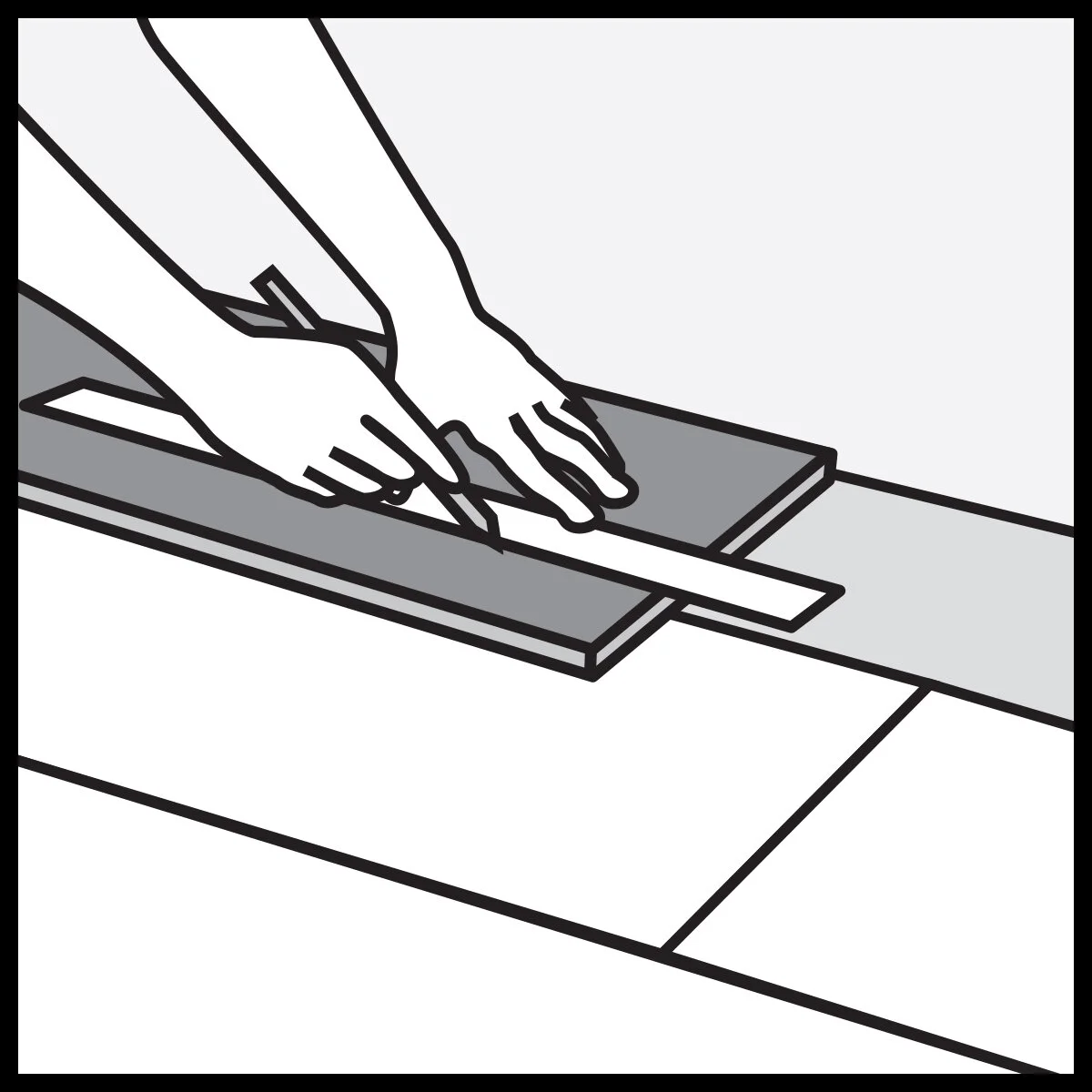 Rotate the last plank 180° with the pattern side upward and place it beside the first row of planks. Lay a ruler, draw a line and cut.